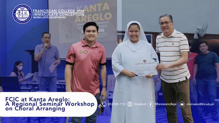 FCIC was represented by Sister Maria Isabel Arnaiz, OSF, at the Leyte Normal University’s Kanta Areglo: A Regional Seminar-Workshop on Choral Arranging. This enriching event, conducted by Dr. Stephen Lagarde, took place on July 6, 13, and 20 at the LNU AV Studio.
