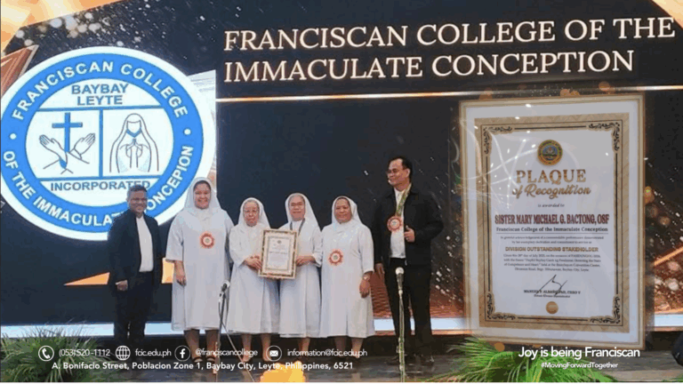 As one of DepEd’s valued stakeholders, we are proud and grateful to share that Sister Mary Michael G. Bactong, OSF, PhD.Ed, School President of the Franciscan College of the Immaculate Conception, Baybay, Leyte, Inc. (FCIC), was recognized as one of the Division’s Outstanding Stakeholders. This recognition is a meaningful tribute to her leadership and lifelong service, truly living out Integrity in Excellence.